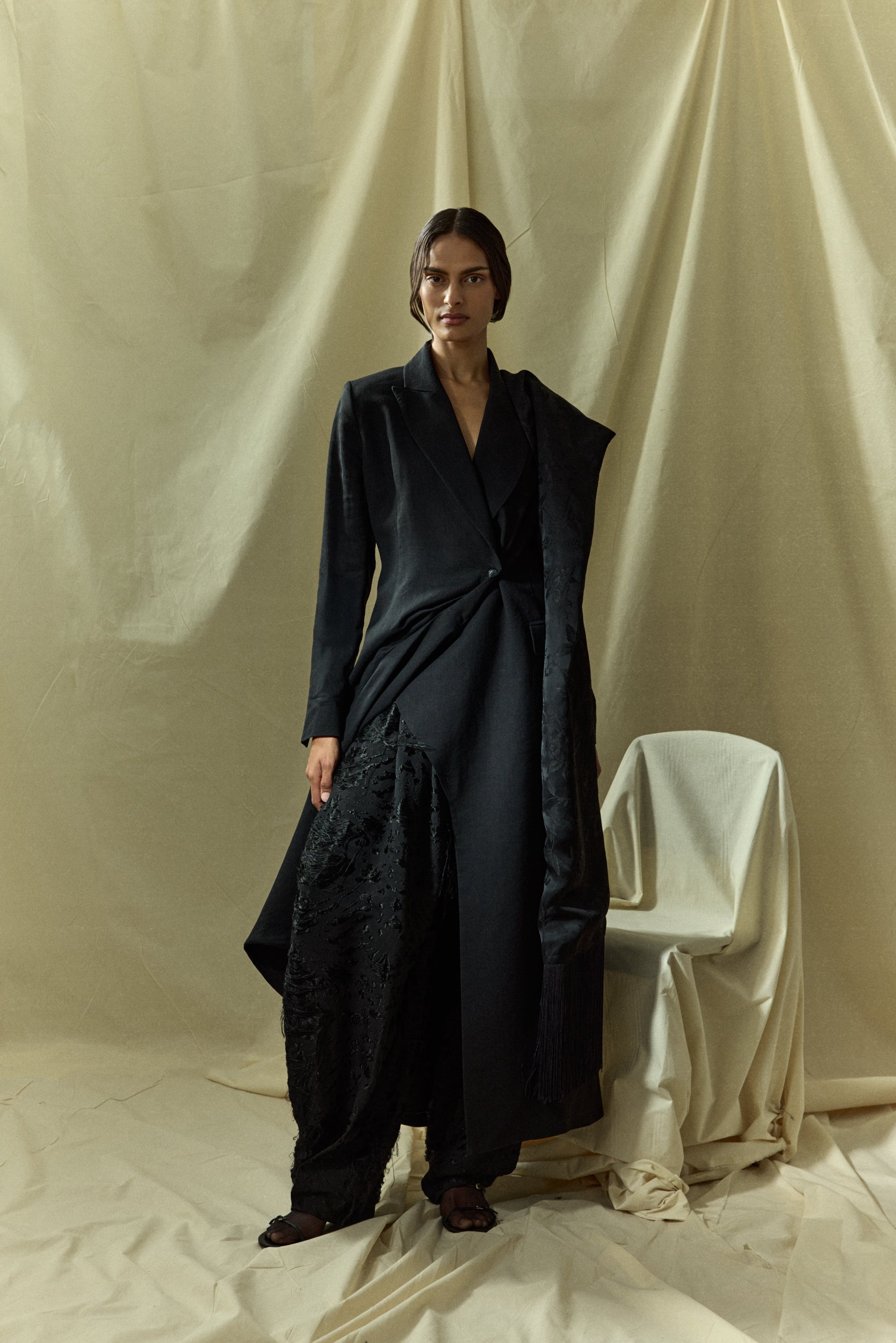 Gaia Coat | Black - Wool silk blend
