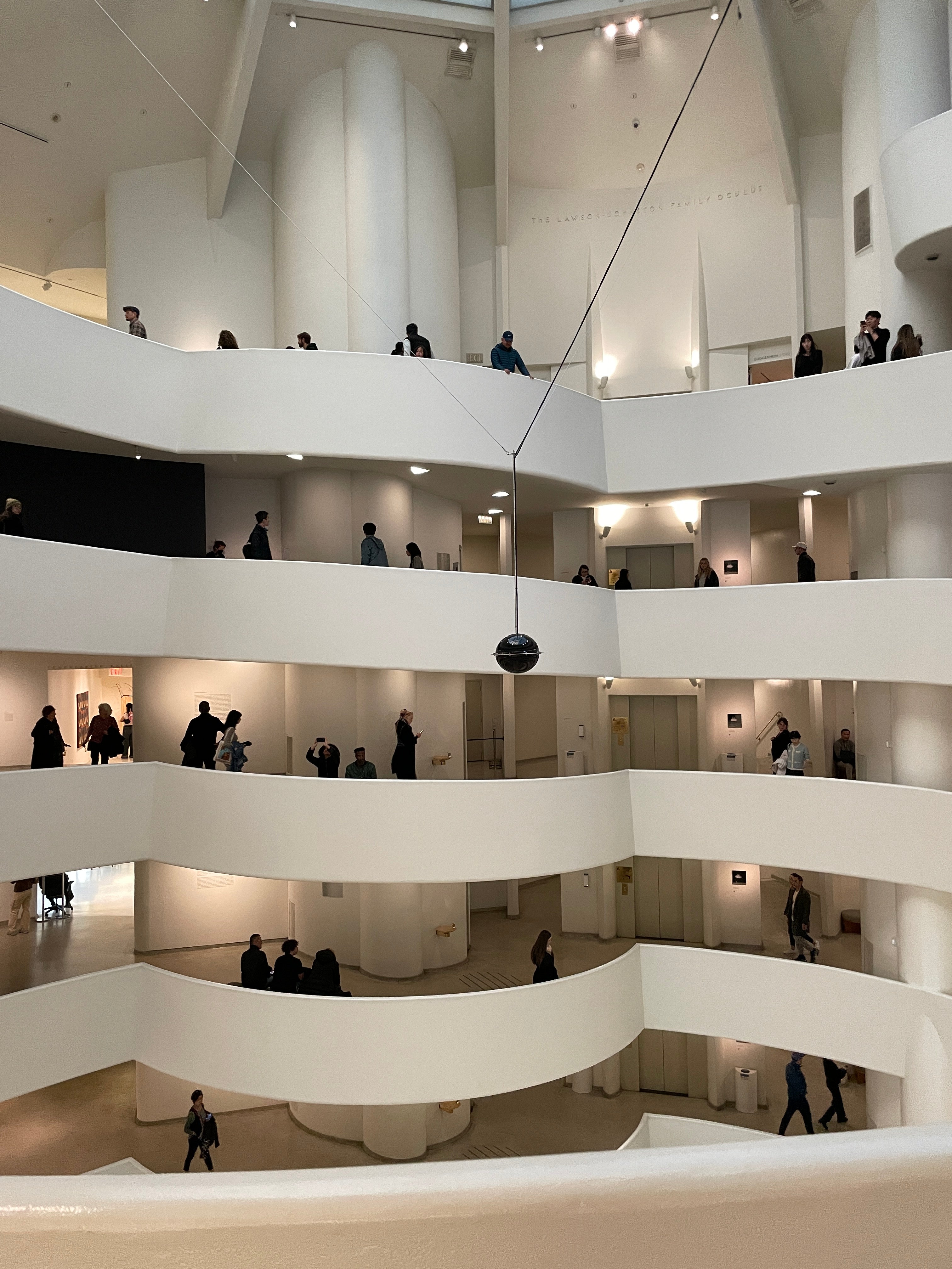 A última vez que visitei a cidade de Nova York, pude ver o museu MET. Desta vez comprei um ingresso para explorar o Museu Solomon R. Guggenheim. Embora a exposição atual, "Going Dark", tenha procurado desvendar a tensão dentro da sociedade contemporânea - onde o desejo de ser visto entrava em conflito com o desejo de permanecer escondido - fiquei mais cativado pela grandeza estrutural do museu e pela sua vibração pulsante.