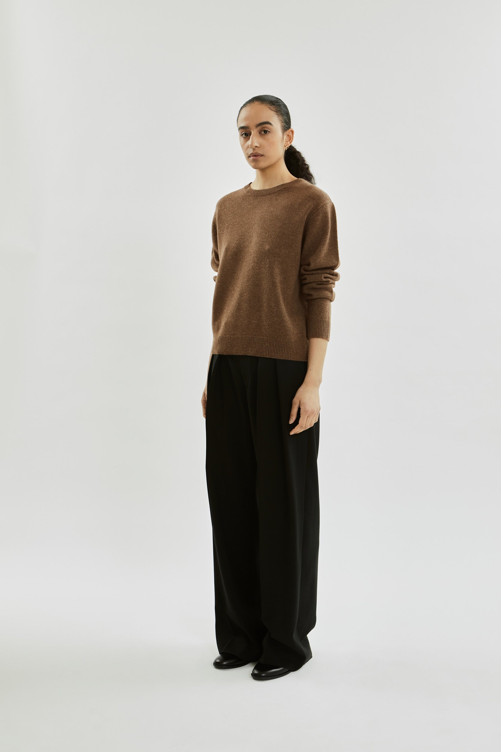 O suéter de mangas compridas e a tripulação criadas a partir da caxemira mais suave, proporcionando uma sensação suave e sem coceira contra a pele. O suéter de malha possui um decote redondo, um ajuste descontraído e ombros ligeiramente caídos.